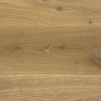 Wide-plank engineered European oak flooring with a subtle brushed texture and contemporary matte finish, offering a clean, modern look with natural timber character.